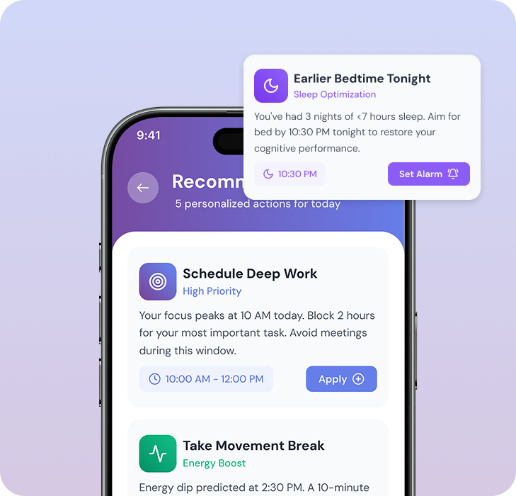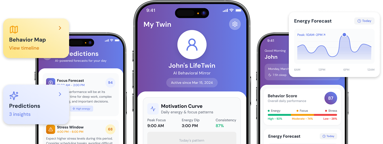 Understand your energy, focus, routines, and behaviour through a personalised AI twin that learns, predicts, and helps you make better daily decisions.